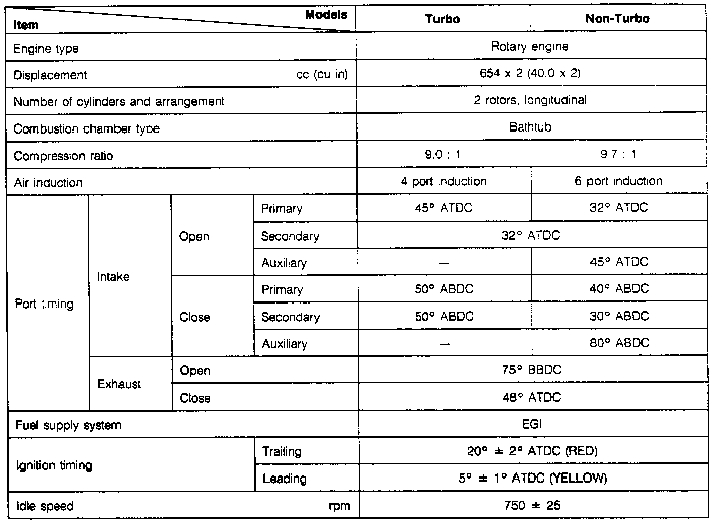 General Engine Specifications