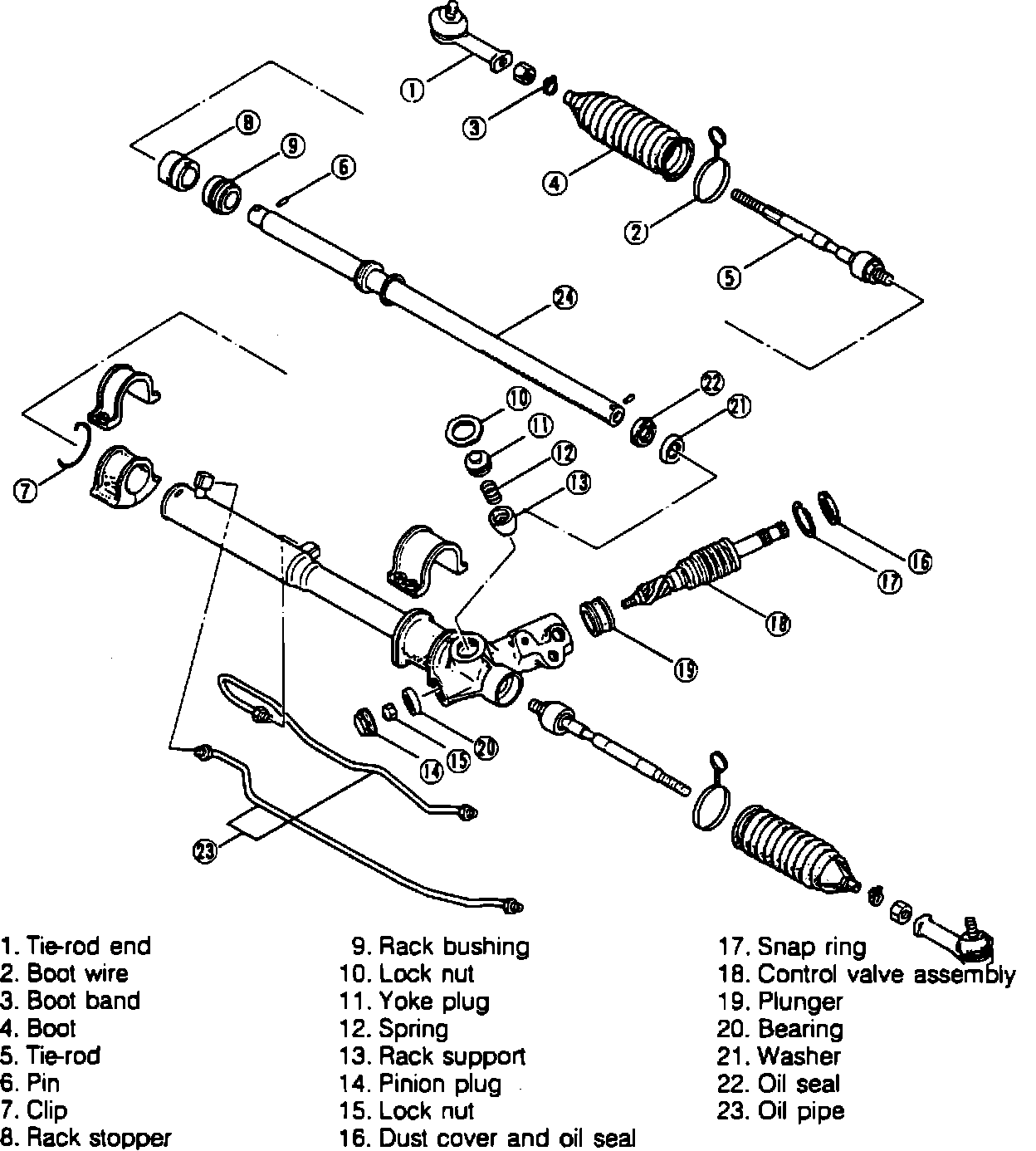 14. Remove washer and oil seal from rack.
