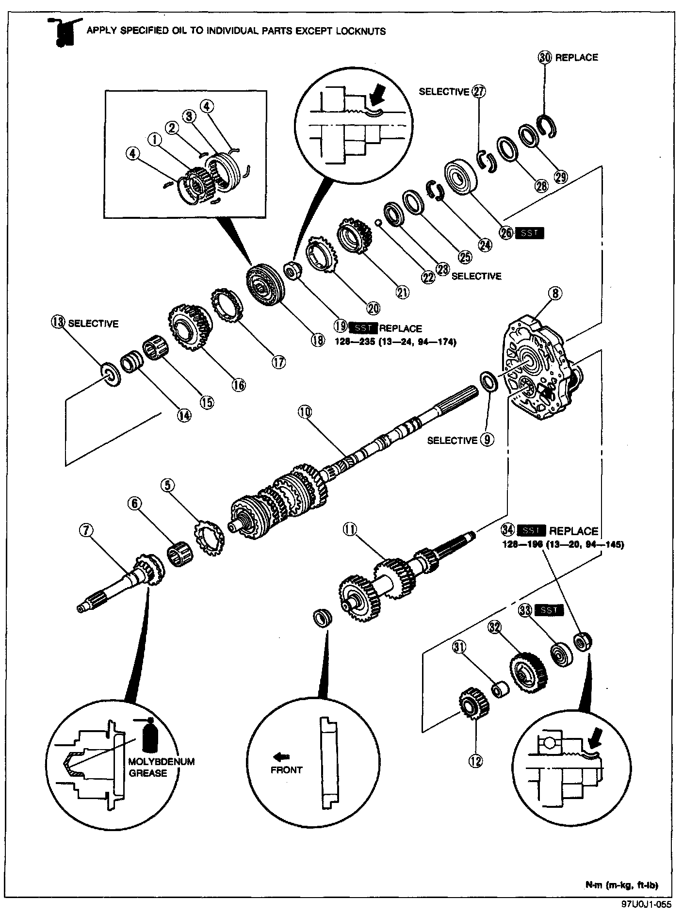 Tightening torque: 128 - 235 N-m (13 - 24 m-kg, 94 - 174 ft-lb)
