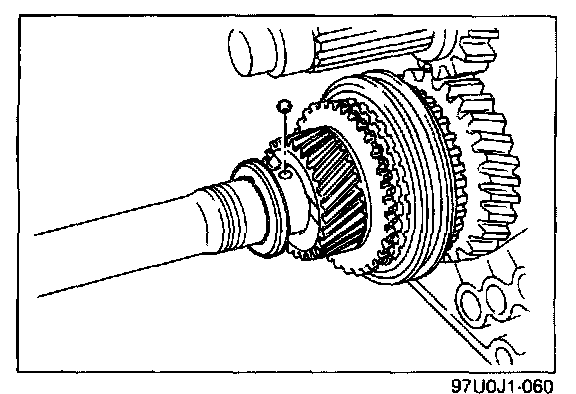 2. Slide the clutch hub sleeves onto 1st and reverse gears to lock the mainshaft.