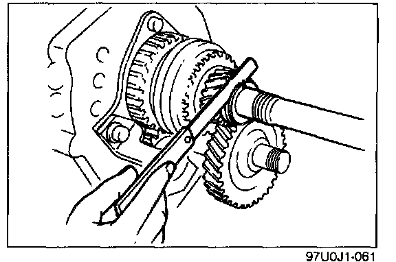 3. Measure the clearance between the thrust lock washer and C-washers (5th gear end play).