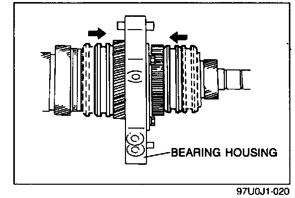 Remove the bearing housing by lightly tapping the countershaft with a copper hammer.