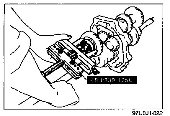 3. Connect the SST to the mainshaft and tighten it securely in a vise.