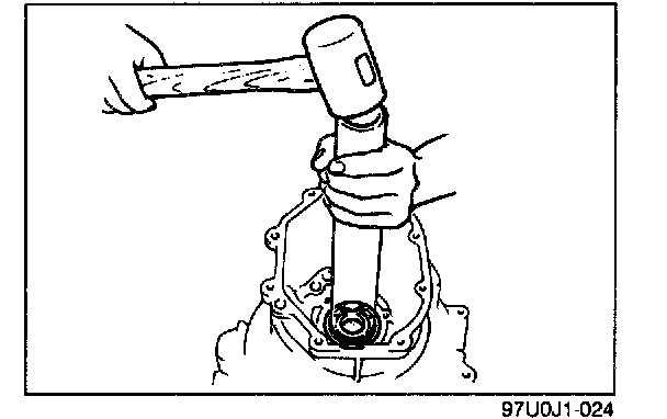 Remove the snap ring, washer, retaining ring, and C-washers; then remove the mainshaft rear bearing with the SST.