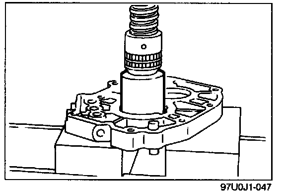 1. Press the mainshaft front bearing into the bearing housing with a suitable pipe.