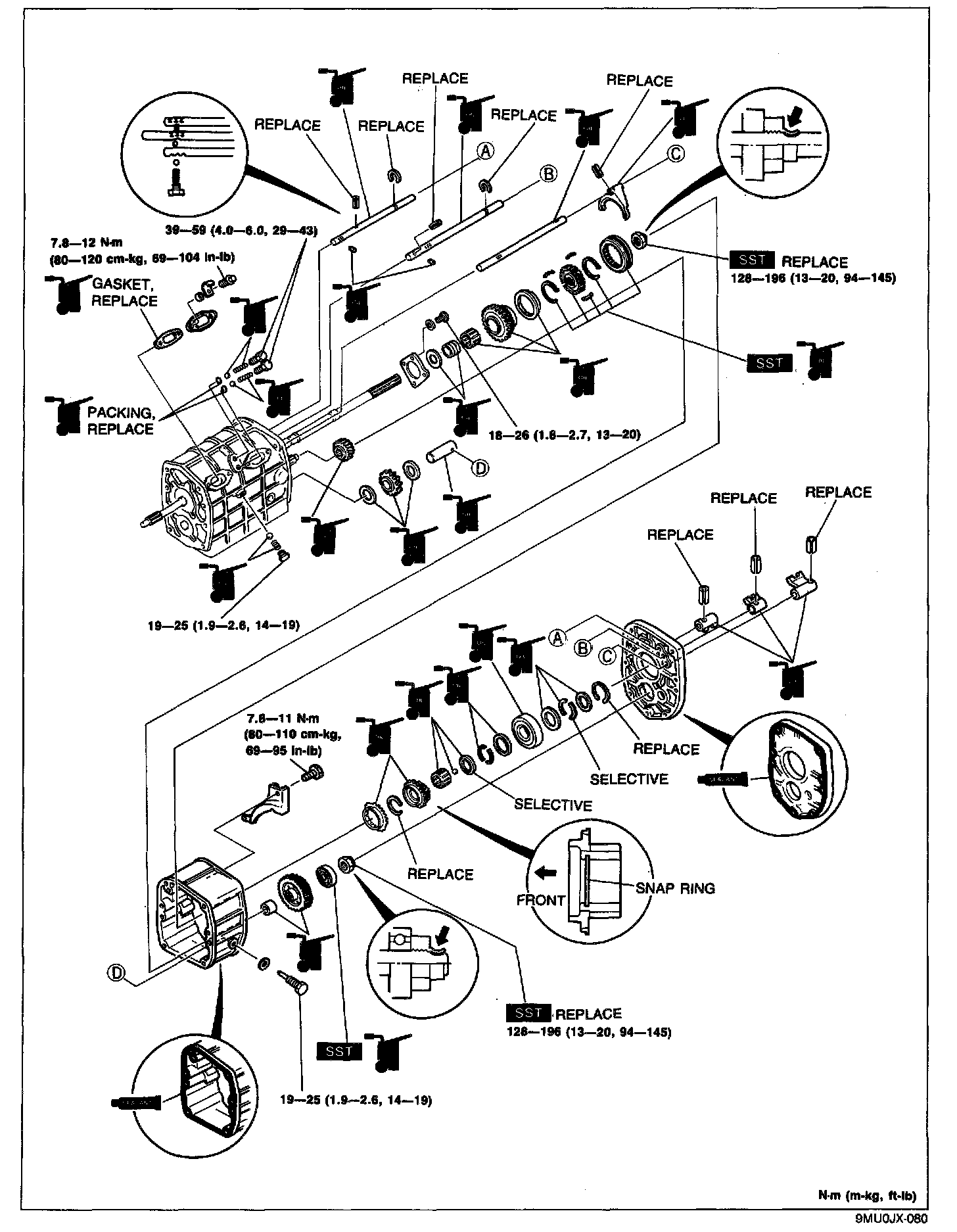 (B): 19 - 25 N-m (1.9 - 2.6 m-kg, 14 - 19 ft-lb)
