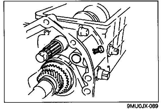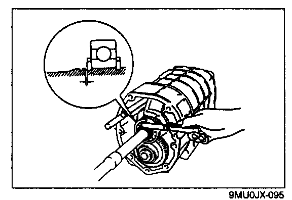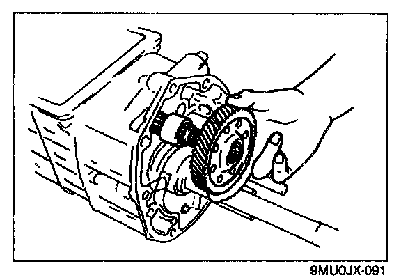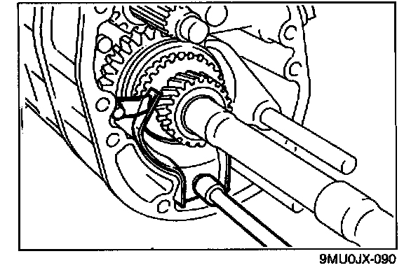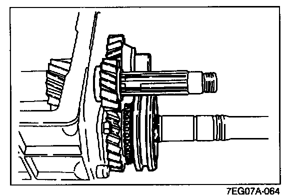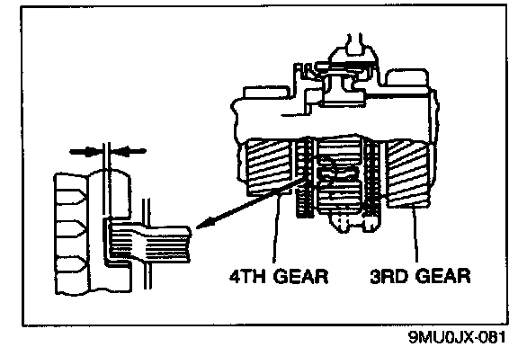 6. Check the clearance between the synchronizer key and the exposed edge of the synchronizer ring. If it is not as specified, adjust with the thrust washers on the front and rear of the mainshaft front bearing.