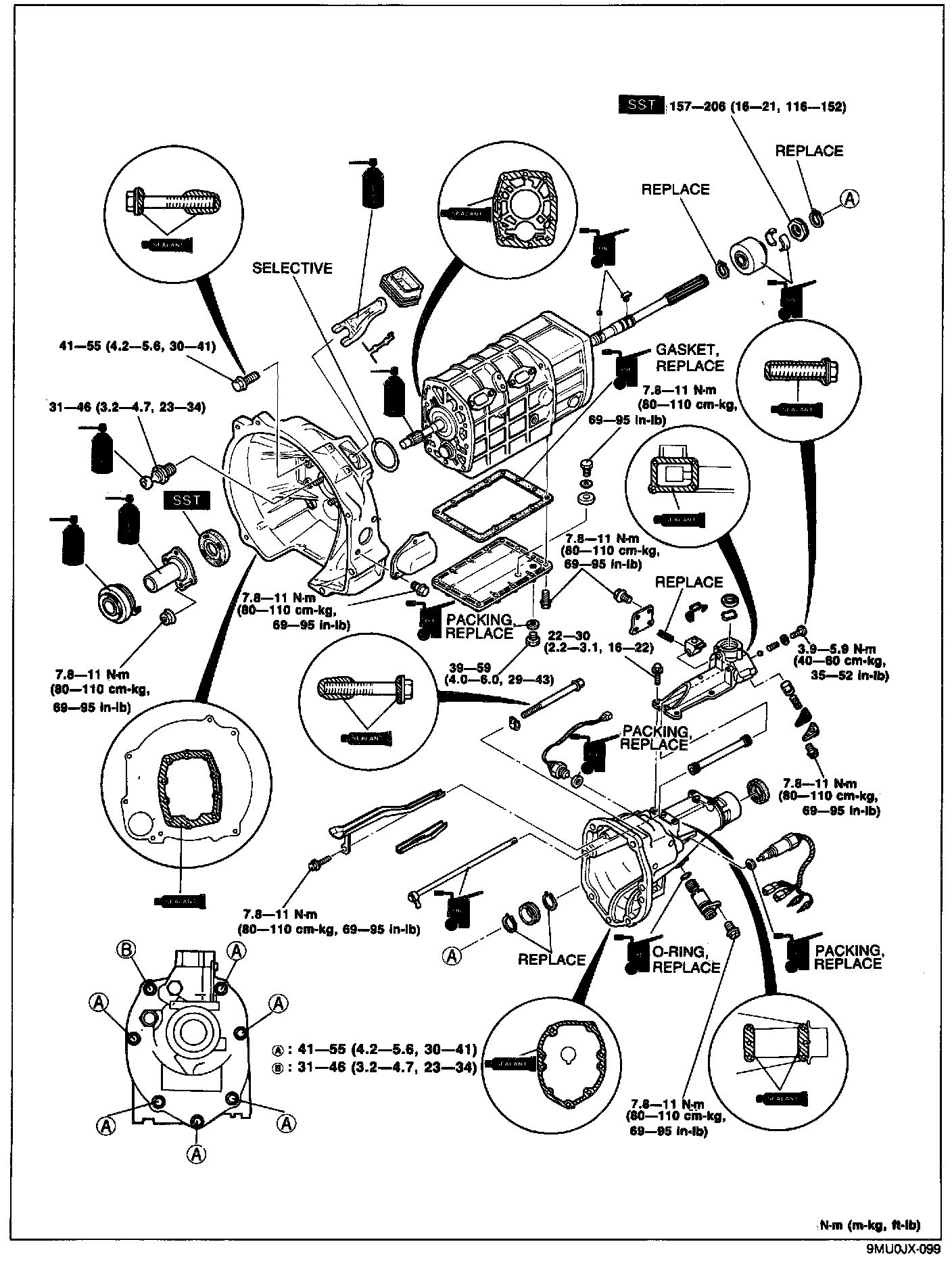 (B): 31 - 46 N-m (3.2 - 4.7 m-kg, 23 - 34 ft-lb)