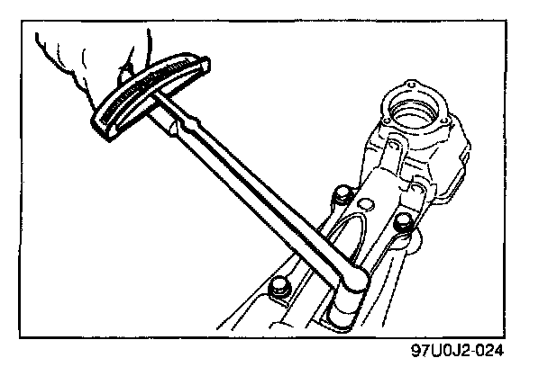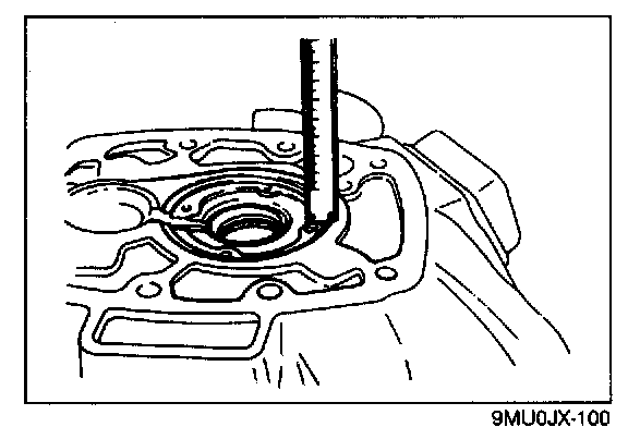 1. Measure the depth of the main drive gear bearing bore in the clutch housing with vernier calipers.