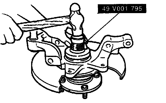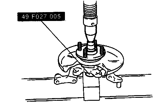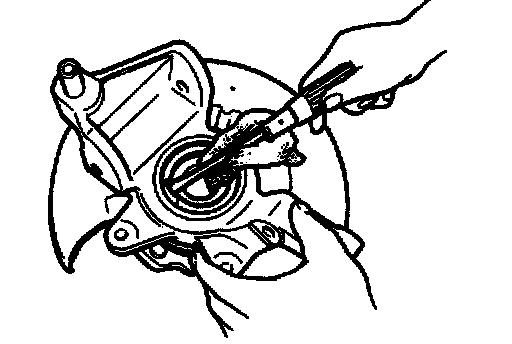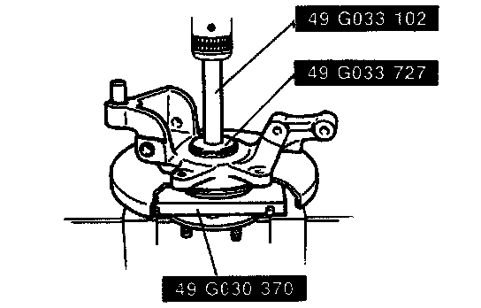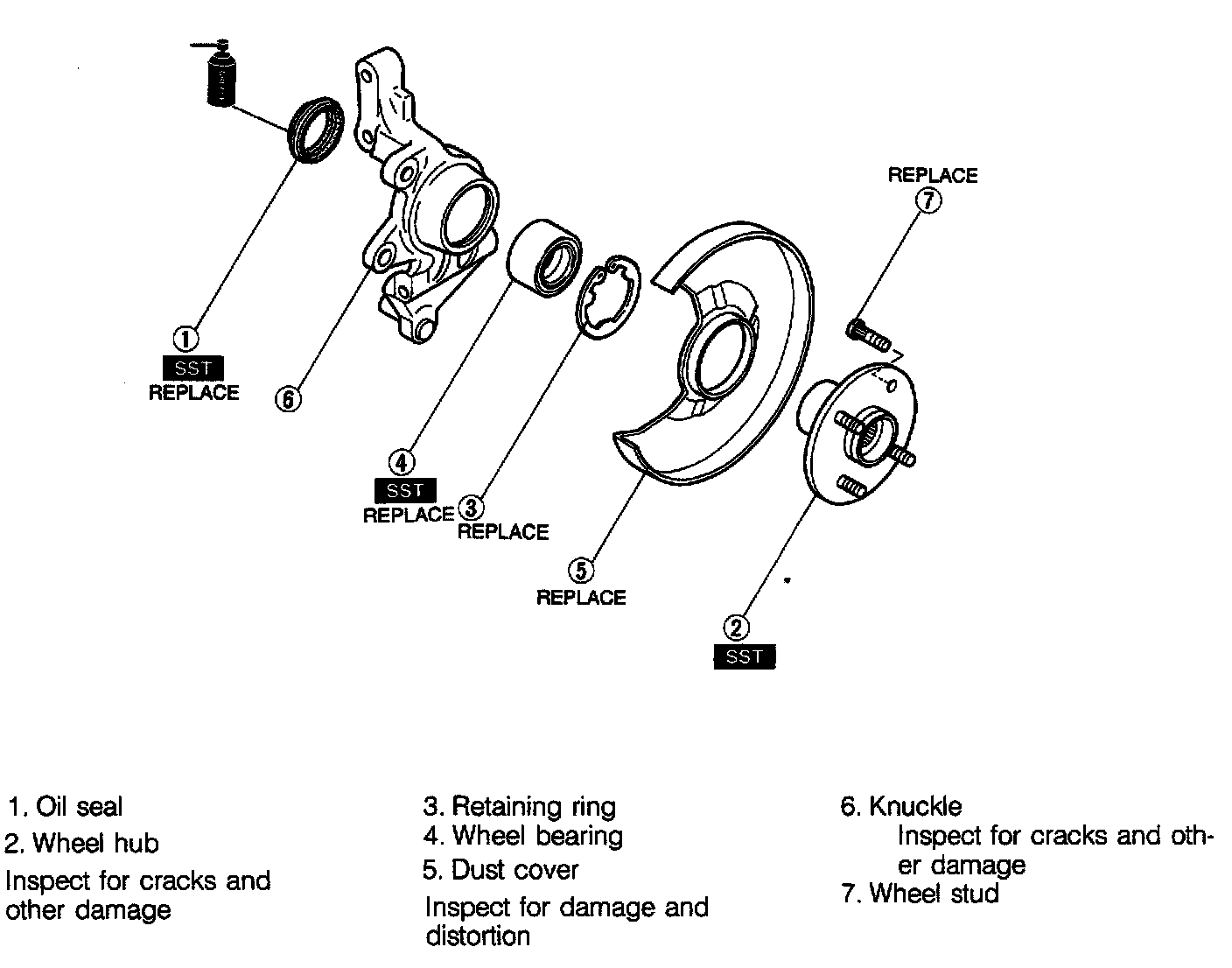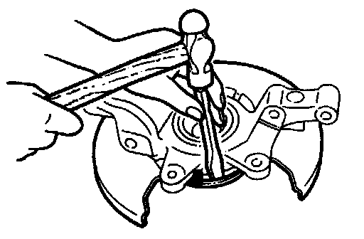 1. Remove the wheel hub from the knuckle with the SST and a press.