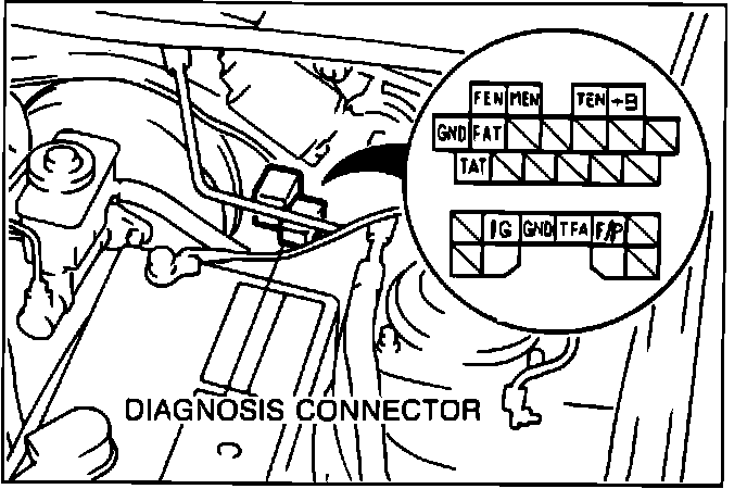 Without these special tools, installing a jumper wire between terminals "TEN" and "GND" causes the malfunction indicator light (MIL) on the dash to flash any trouble codes stored in ECU memory.