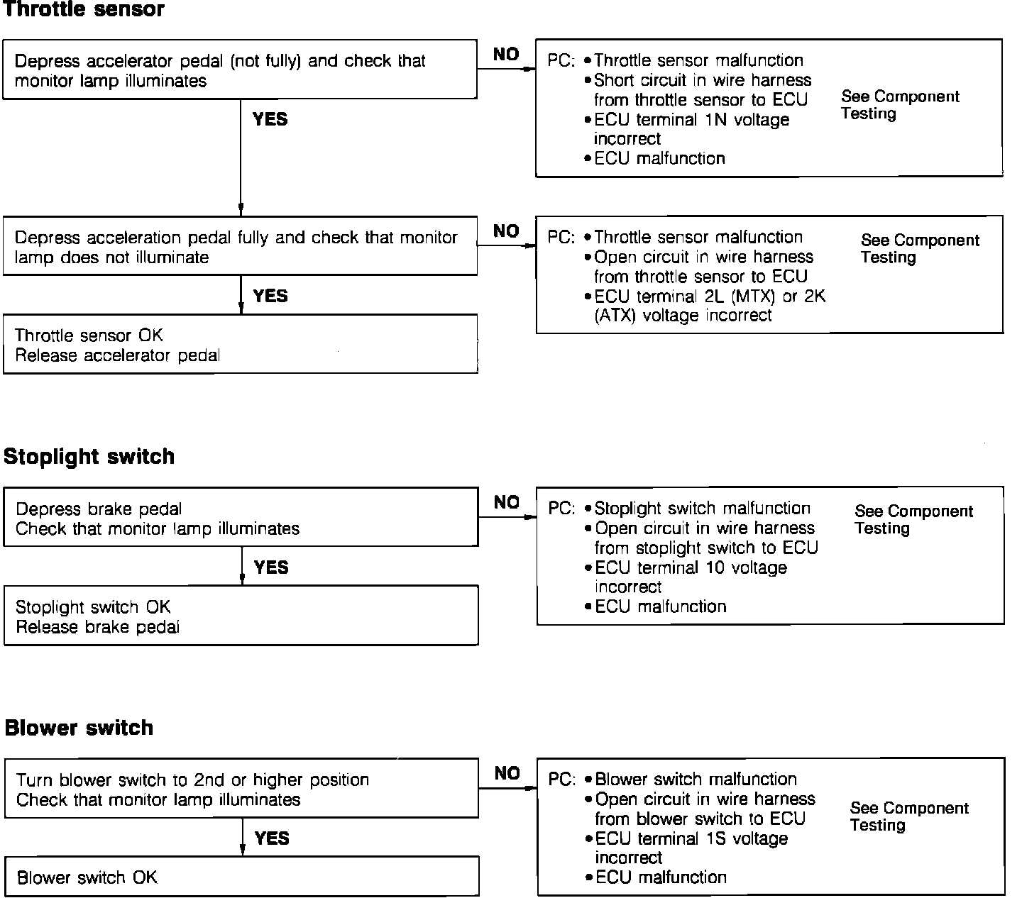 7. Check if monitor lamp illuminates when each switch is made to function as described on image chart: