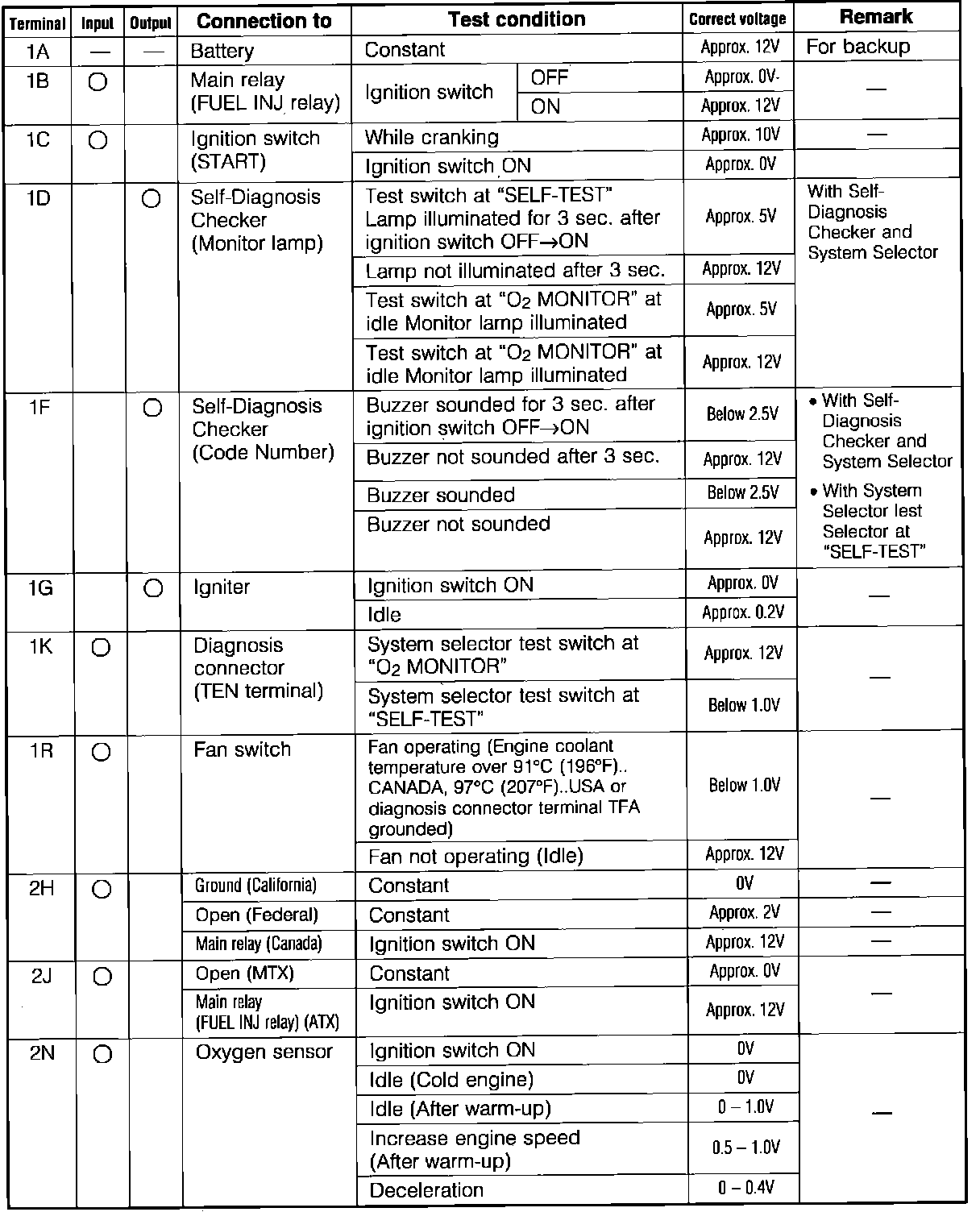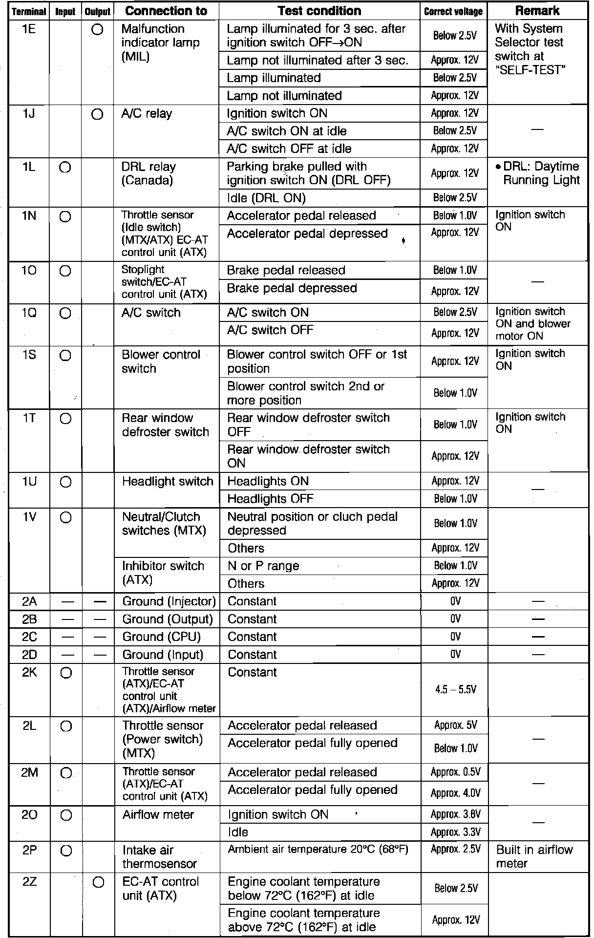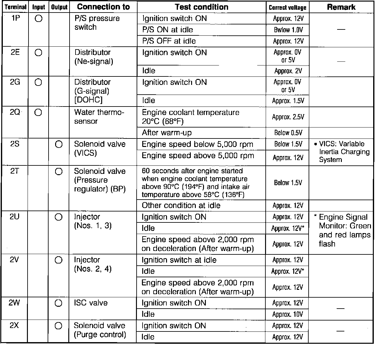 Engine Control System. 2wd. ECU Pin Voltage Chart: