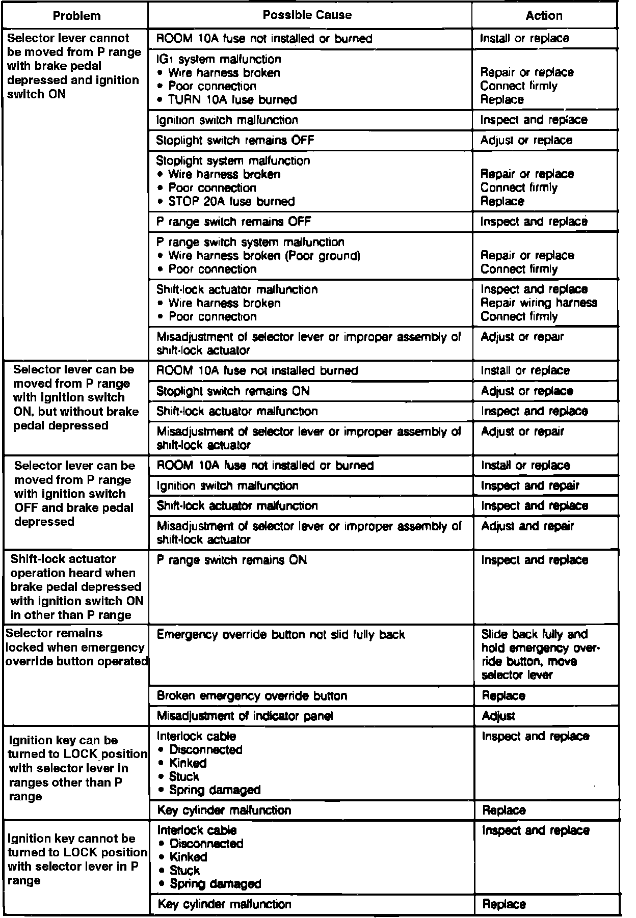Fig. 5 Shift-lock System Diagnostic Chart: