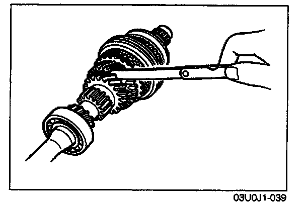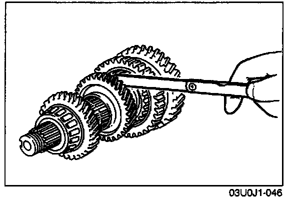 2. If the clearance exceeds the the maximum, check the contact surfaces of 5th gear and the clutch hub. Replace worn or damaged parts.