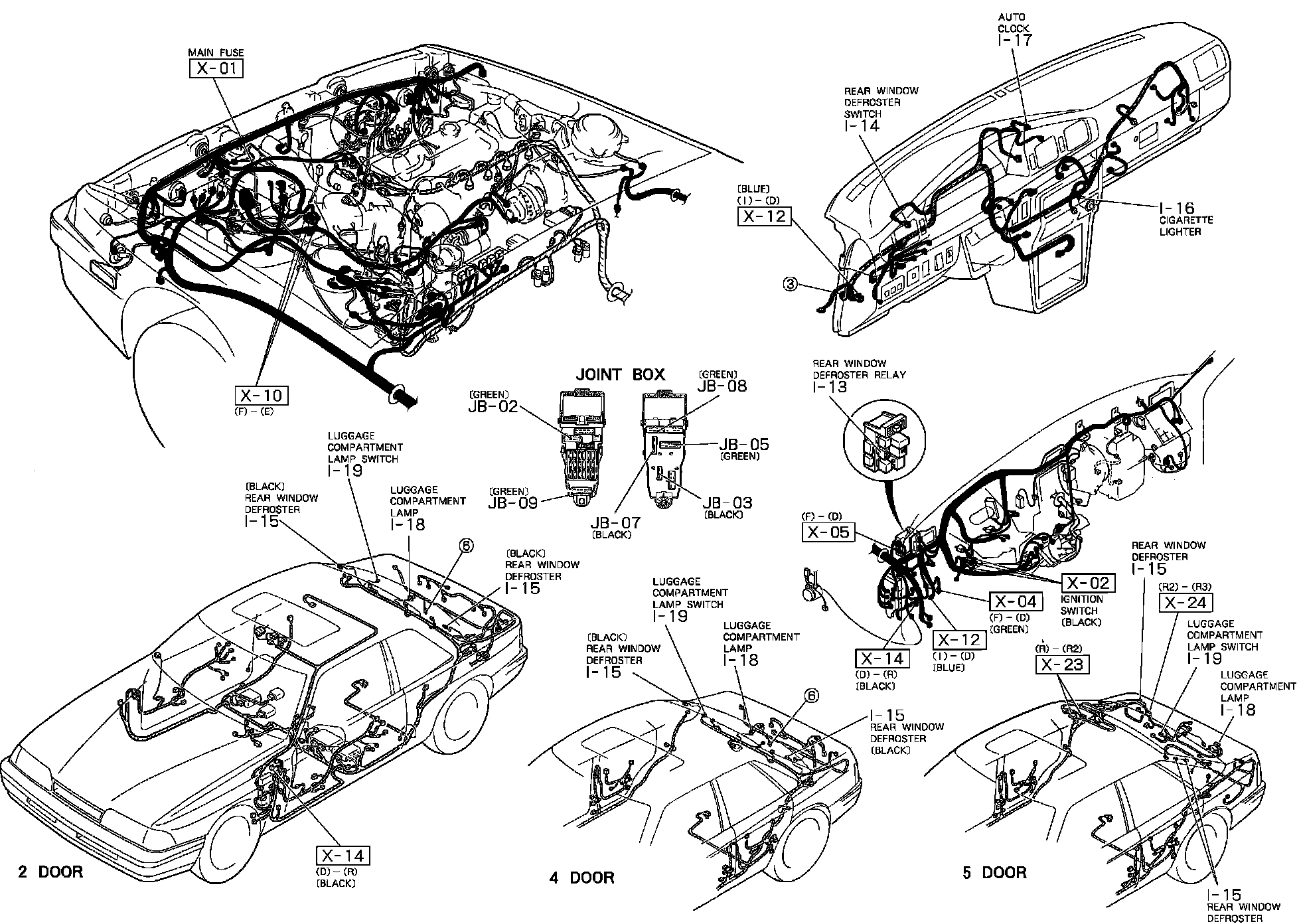 Rear Window Defogger, Clock, Cigar Lighter And Luggage Compartment Lamp. Harness And Connector Locations: