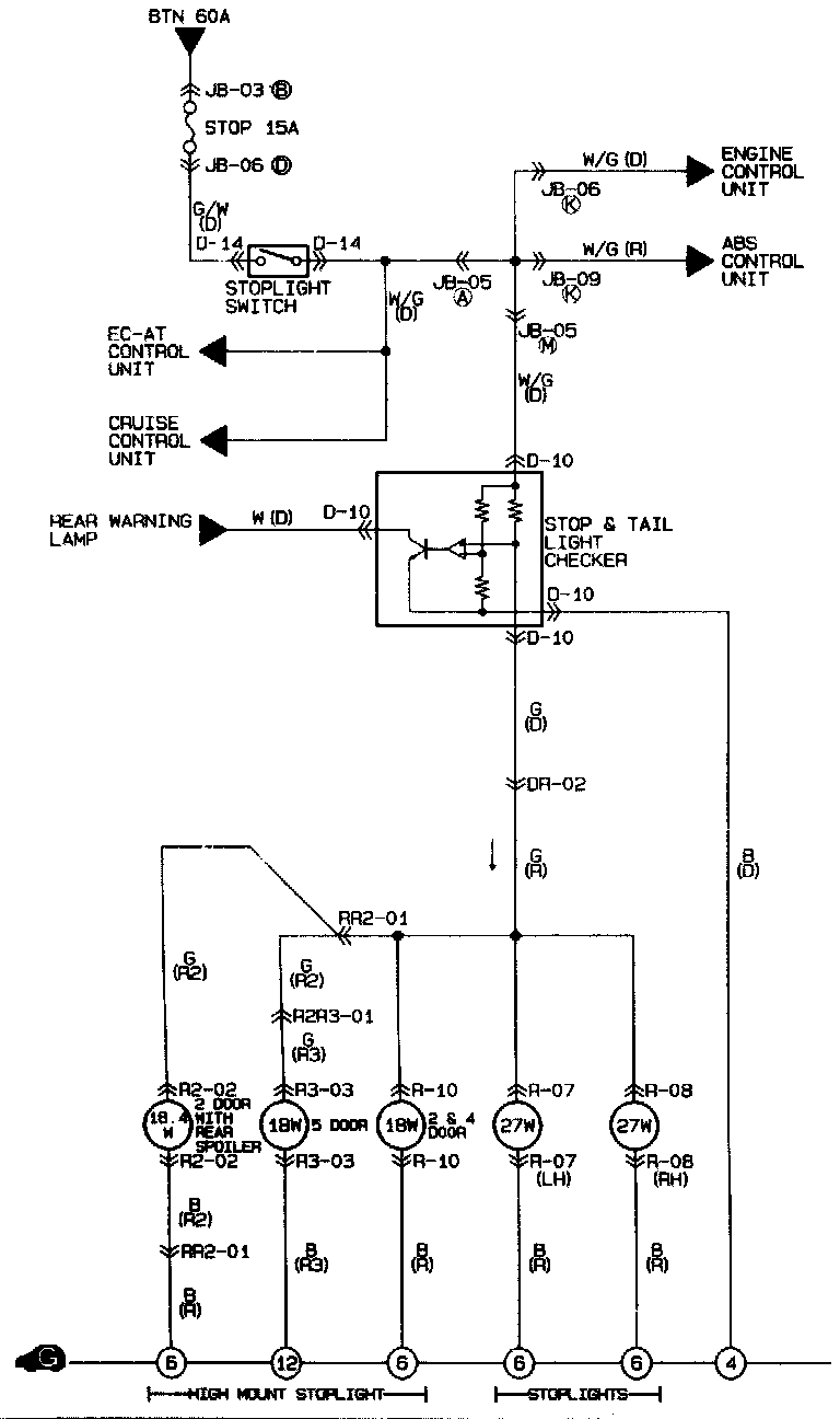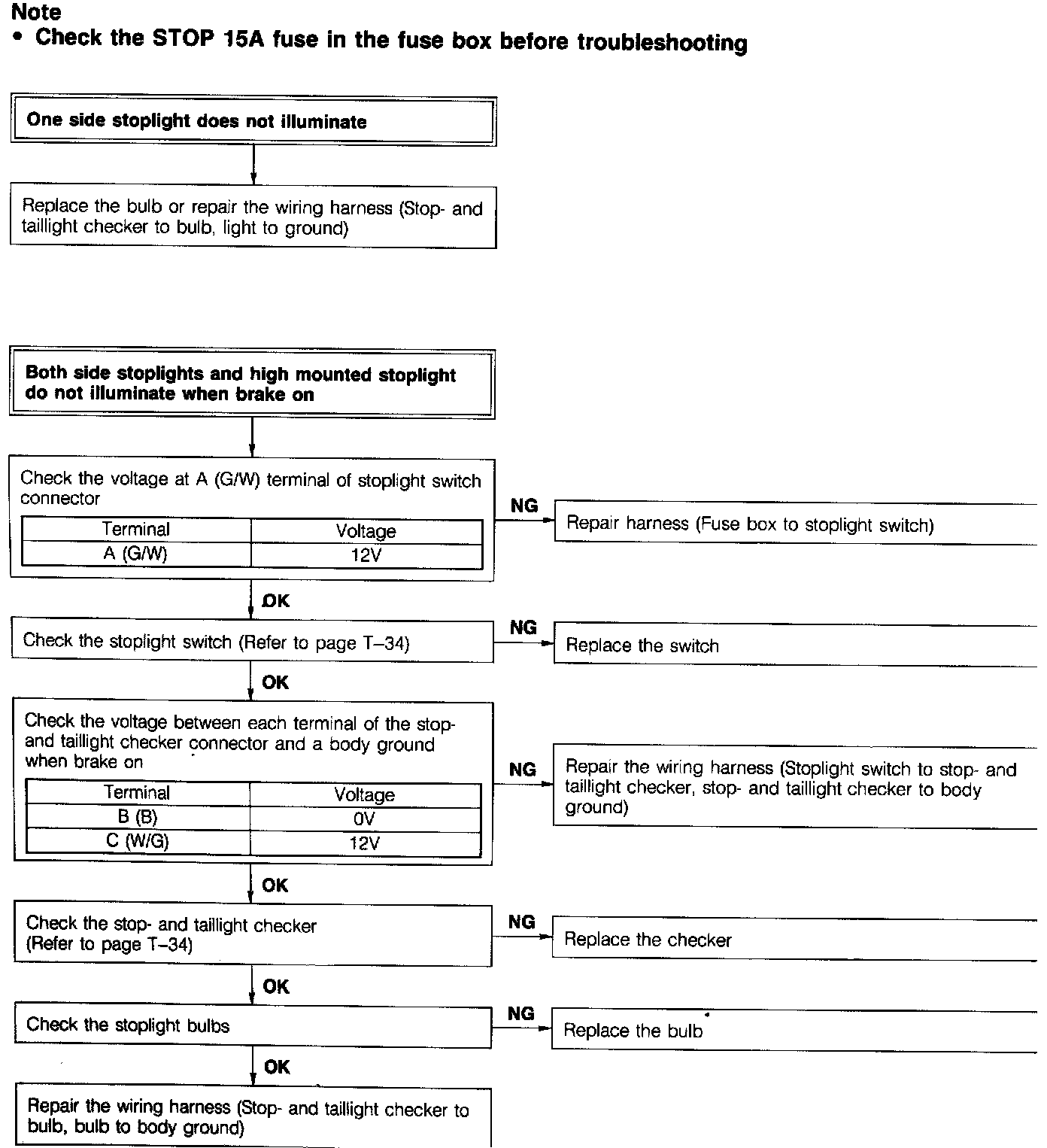 1. Check for continuity between terminals of the stop- and taillight checker.