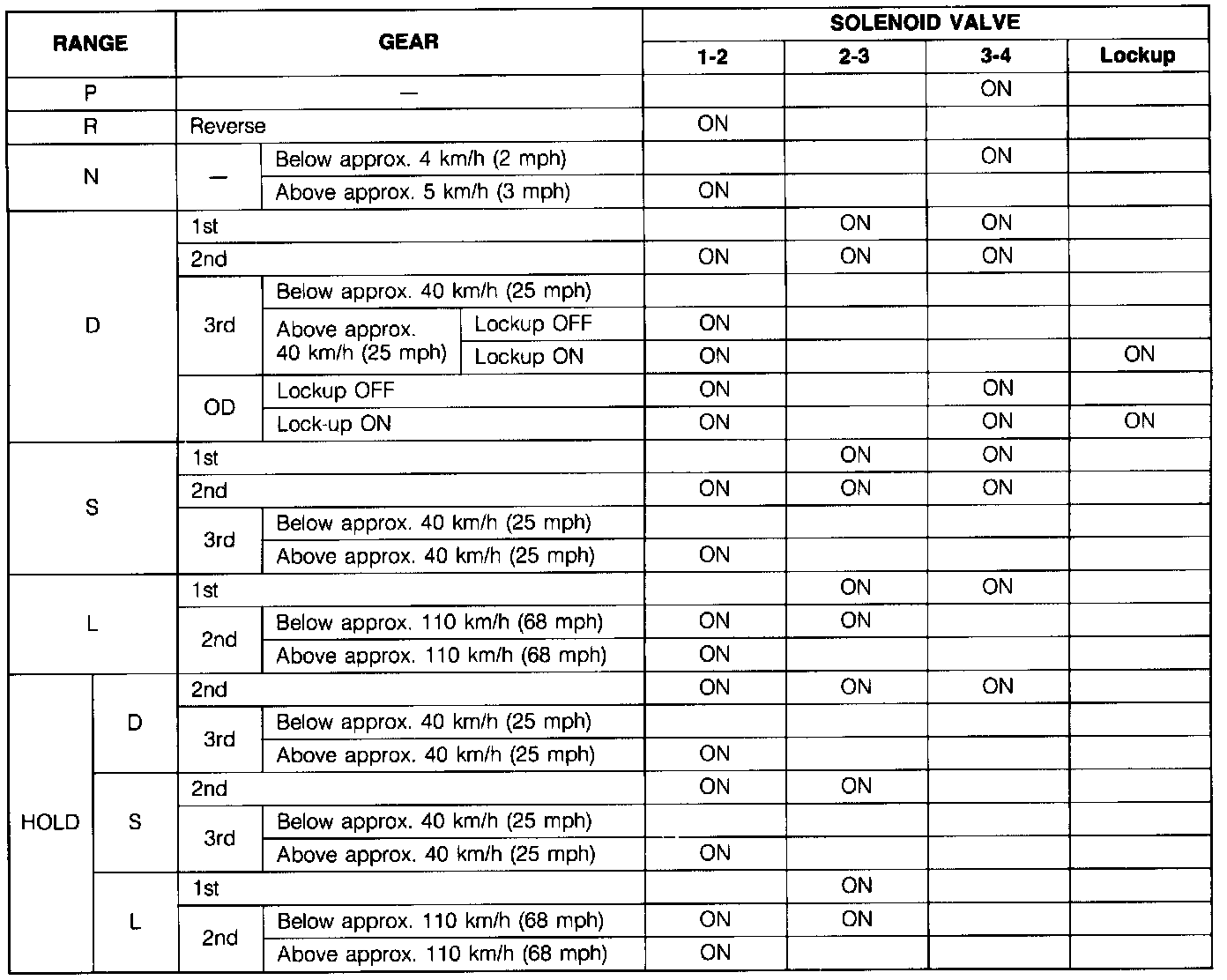 Solenoid Valve Operation Table
