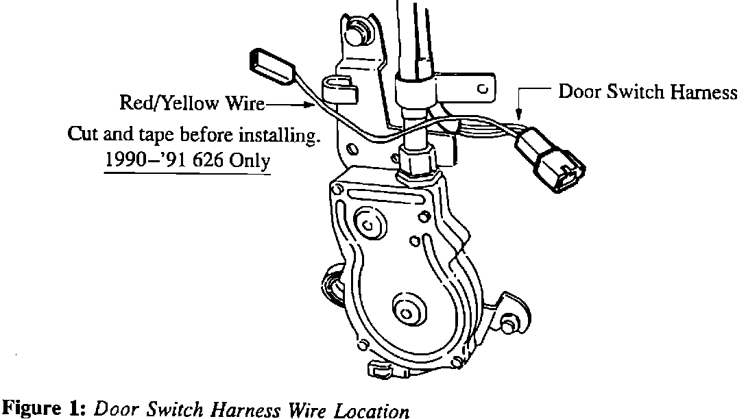 There is no car-side harness plug for this wire on 1990 and '91 626 models. When replacing this assembly on 1990 and '91 626's, cut the wire and tape it to prevent short circuits from occurring. Figure 1.