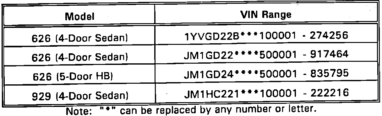 1988 - 1991 626 Models: