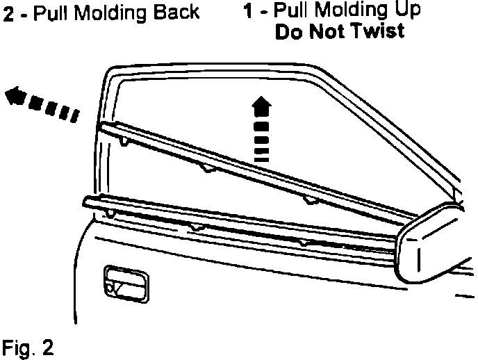 2. Carefully remove outside beltline molding. Begin removal at the rear clip. Refer to figure 2.