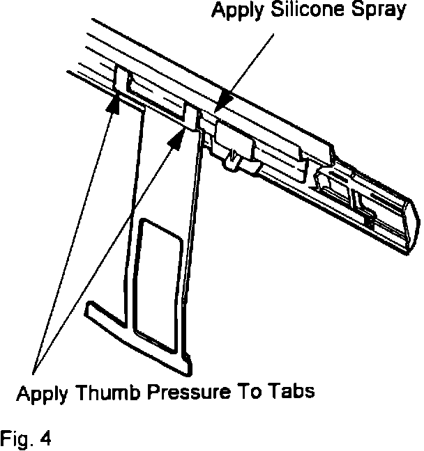 Do Not Force The Shield Onto The Molding. Press the shield into place slowly and carefully. Apply thumb pressure directly over the attachment tabs. Refer to figure 8. If attachment tab on the shield is broken, replace the shield with an undamaged part.
