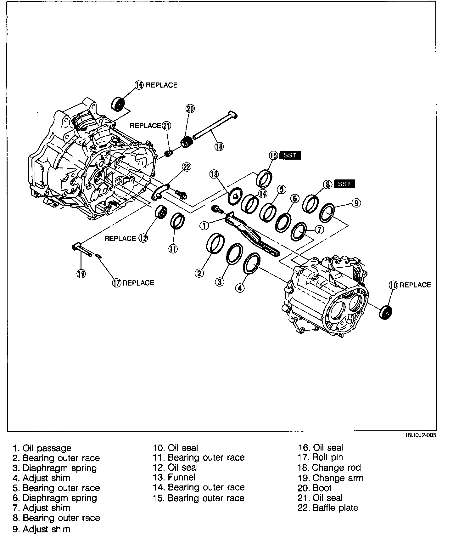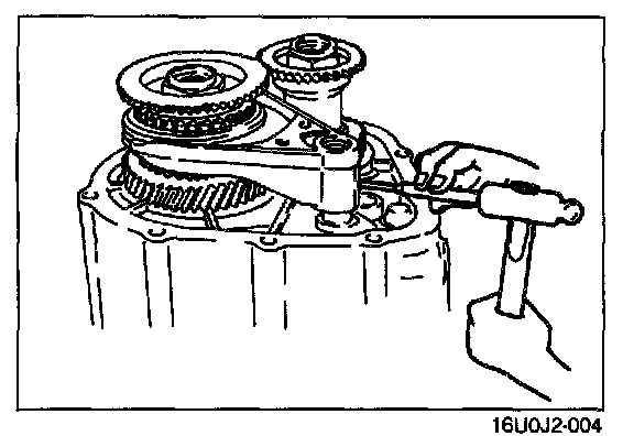 Remove the shift fork (5th) together with the clutch hub assembly.
