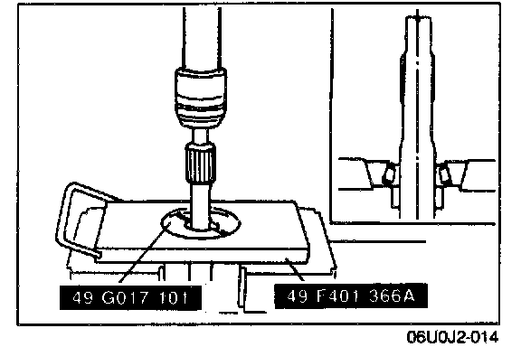 - After installation is finished, pull the front hub slowly outward to check that the driveshaft is held securely by the clip.