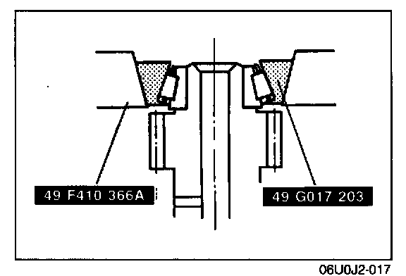 2. If the clearance exceeds the maximum, check the contact surfaces of 5th gear and the clutch hub. Replace worn or damaged parts.
