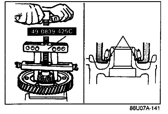 NOTE: insert the rod into the roll pin hole from the ring gear mounting surface side.