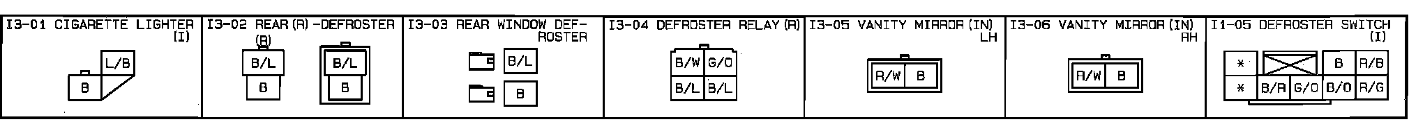 Rear Window Defogger, Vanity Mirror And Cigar Lighter. Connector Identification: