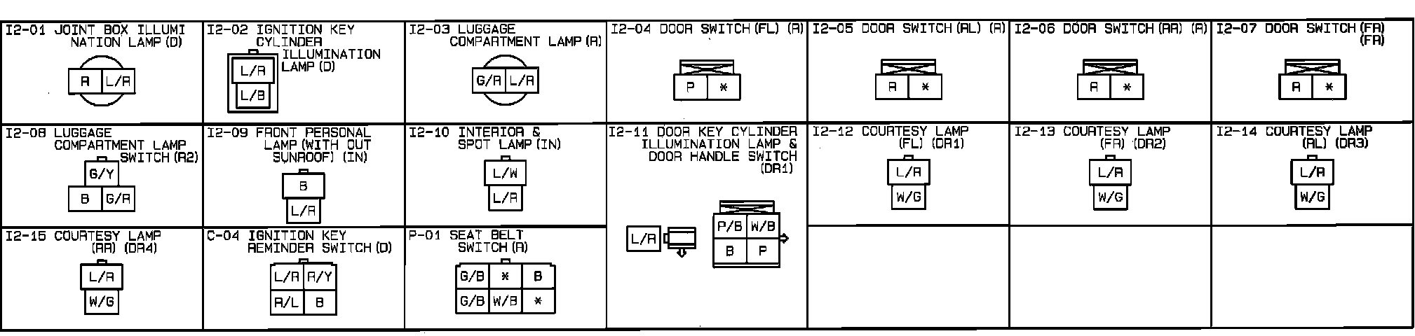Interior, Spot, Courtesy, Luggage Compartment, Front Personal, Ignition Key And Door Lock Cylinder Lamps. Connector Identification:
