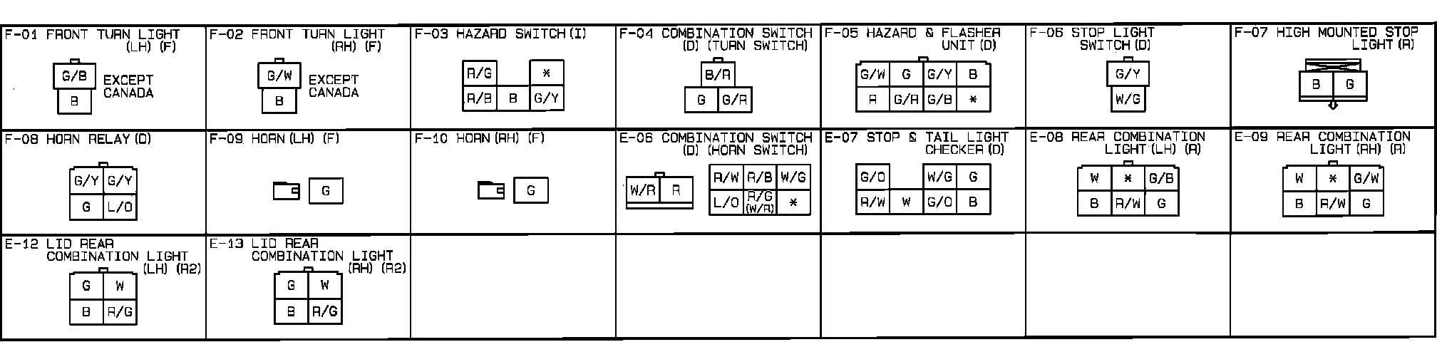 Horn. Back-Up, Stop, Turn And Flasher Lights. Connector Identification: