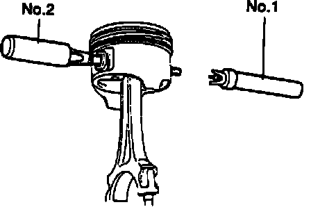 36. Using handle of a hammer, remove piston and connecting rod assembly through top of cylinder block.