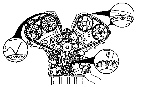 2. Make an arrow on the timing belt to indicate direction of travel if the belt is to be reused.