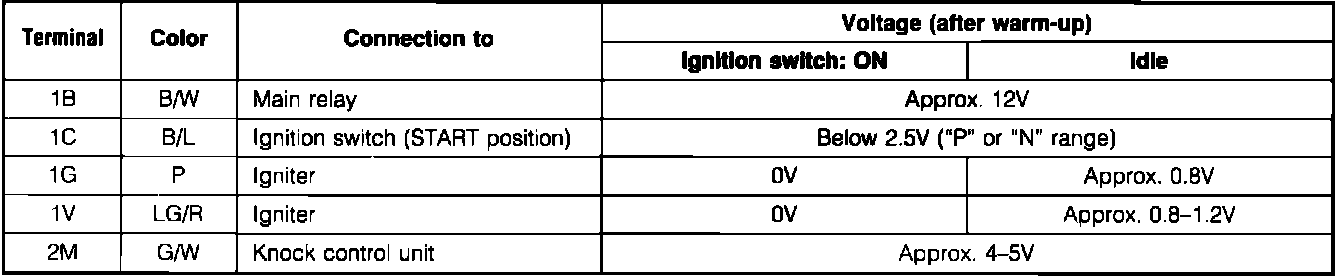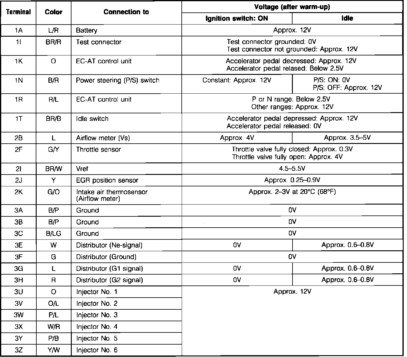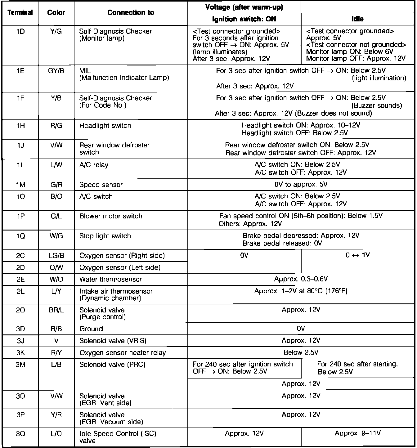 Engine Control System. DOHC. ECU Pin Voltage Chart: