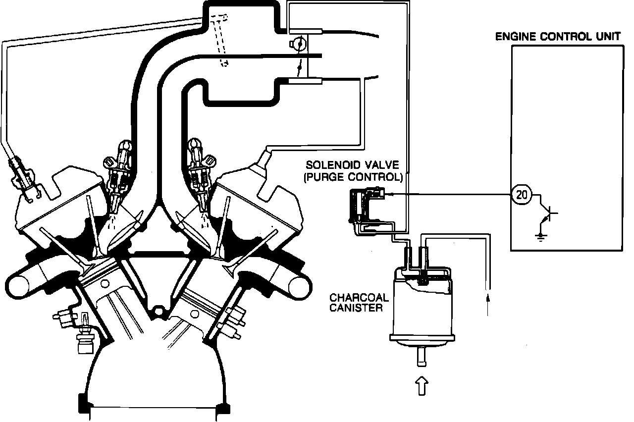The solenoid valve is operated by duty signals from the ECU. The quantity of evaporative fumes introduced into the engine and burned is controlled in relation to ECU input signals relating to operating conditions. Evaporative fumes are purged from the charcoal canister under these conditions: