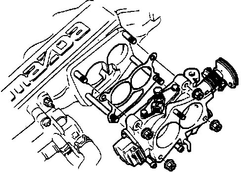 The throttle body regulates the amount of air allowed into the engine depending on the drivers demand for power. The farther the throttle is opened the more air and fuel are burned in each cylinder cycle, and the more power is produced. The throttle body consists of two throttle valves on a common shaft, a throttle position sensor, and a cold start valve mounted in the top of the throttle body housing.