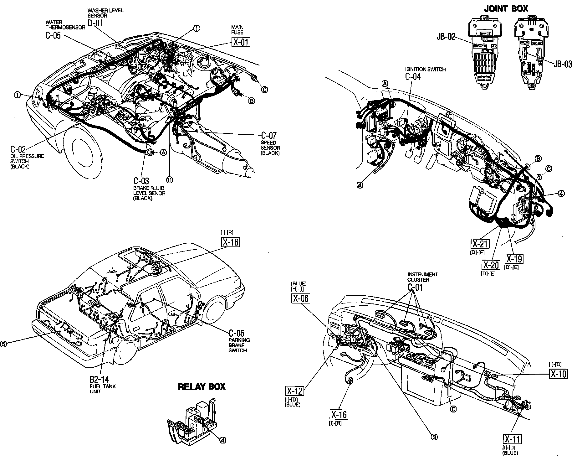 Instrument Cluster And Warning Lamps. DOHC. Temperature And Fuel Gauge. Tachometer. Fuel, Charge, Washer, Rear, Hi Beam, Oil, Abs, Brake, LH And Rh Turn, Belt, Door And Security Indicators. Harness And Connector Locations.: