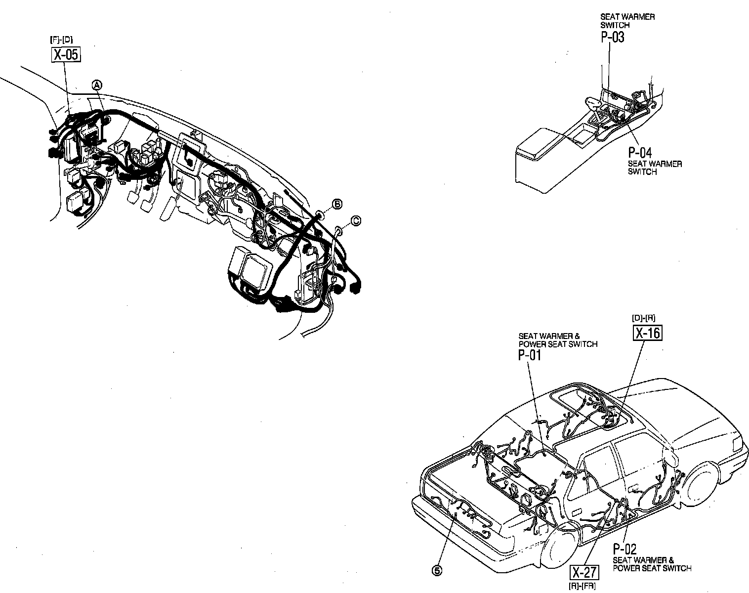 Power Seat And Seat Warmer. Harness And Connector Locations: