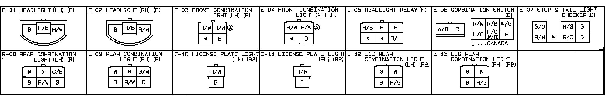 Front And Rear Side Marker, Tail, License Plate And Headlights. Connector Identification: