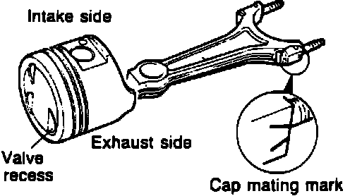 2. Assemble piston and connecting rod with exhaust side of piston (single valve recess side) aligned with cap mating mark on connecting rod, Fig. 31.