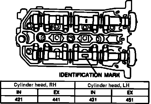 b. On DOHC engines, diameter of Nos. 1 and 4 should be 1.1768-1.1797 inch (29.890-29.965mm) and diameter of Nos. 2 and 3 should be 1.1756-1.1785 inch (29.860-29.935mm). Out of round must not exceed .0012 inch (.03mm).