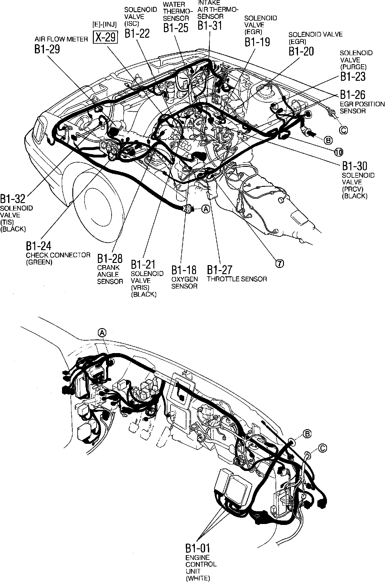 Engine Control System. EGI. Harness And Connector Locations: