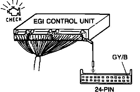 1. Start engine and verify that "CHECK" light illuminates when ECU terminal 1A (GY/B) is grounded.