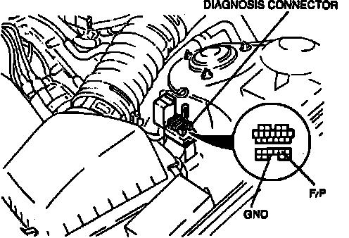 2. On 1992 models, connect the diagnosis connector terminals F/P and GND with a jumper wire as shown in Fig. 2.