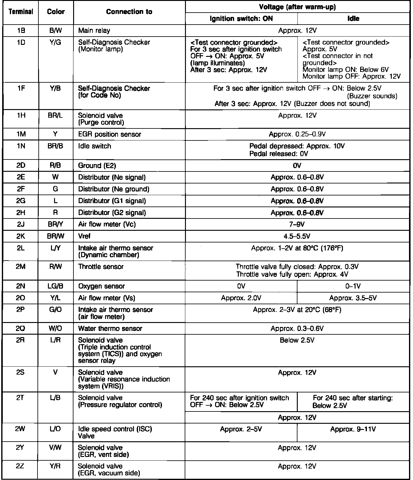 Engine Control System. EGI. ECU Pin Voltage Chart: