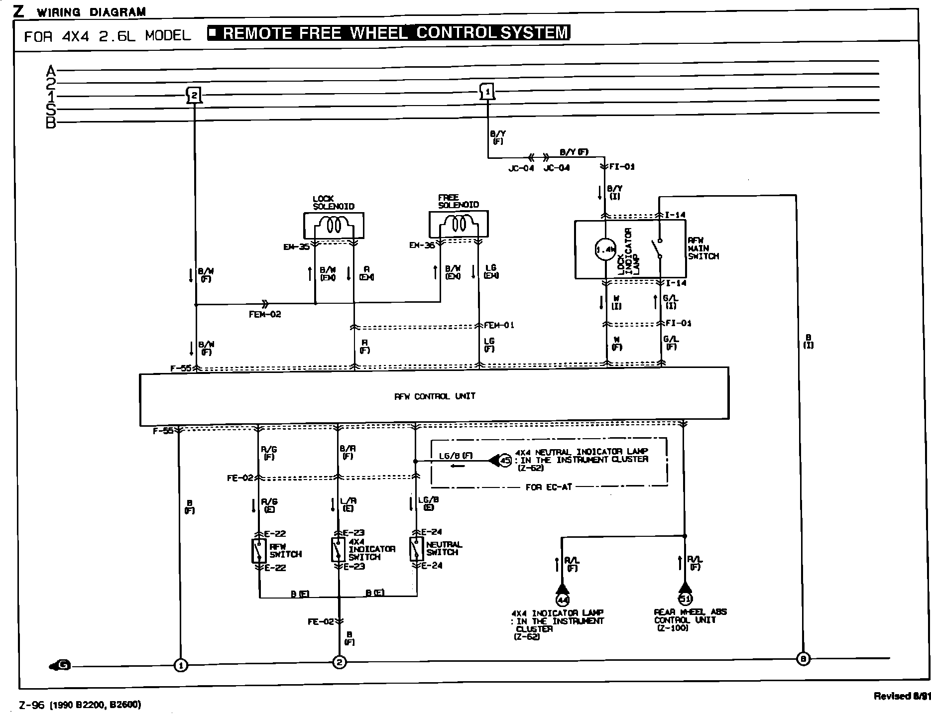 1990 B2200, B2600 Remote Free Wheel Control Wire Diagram