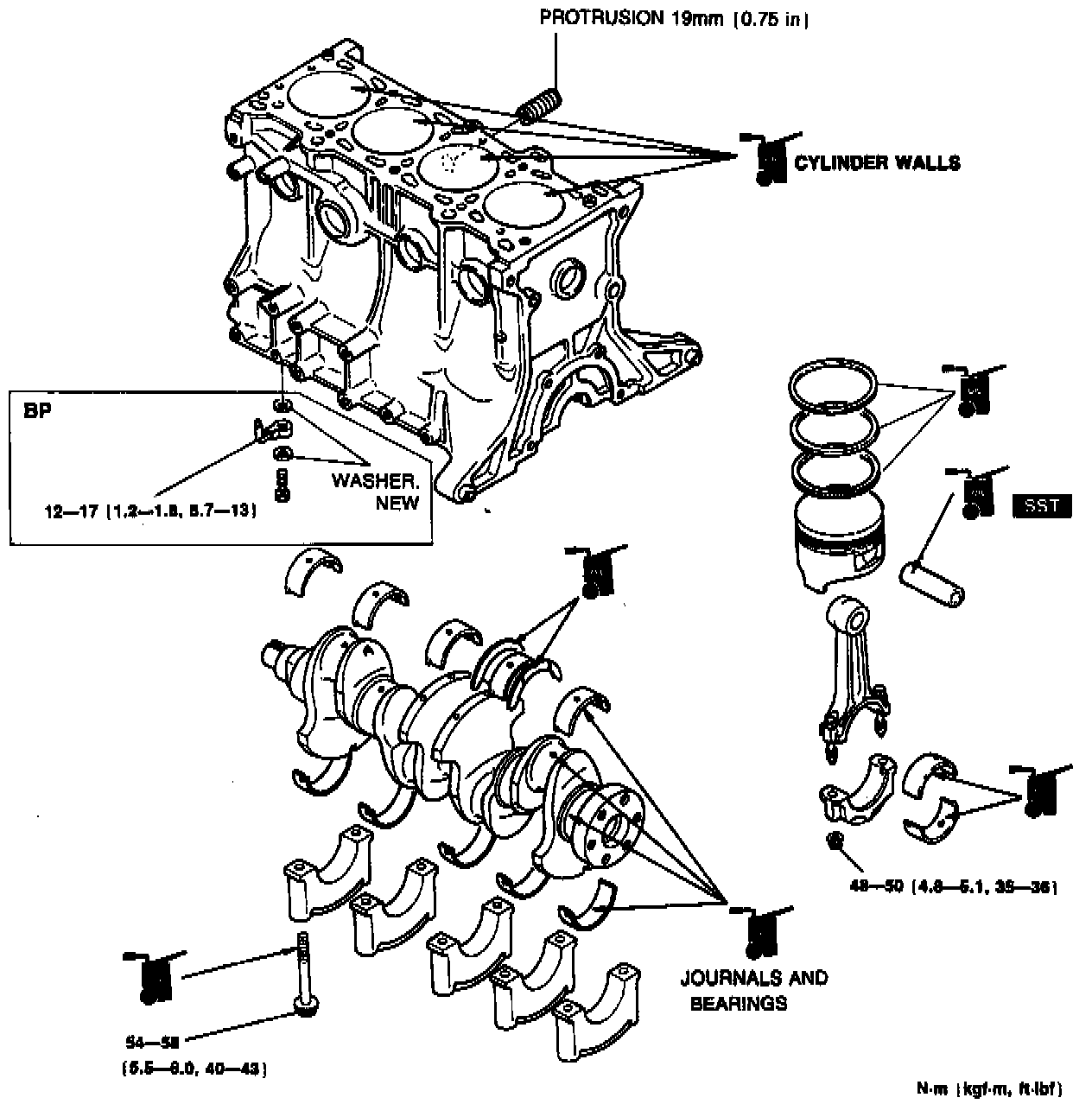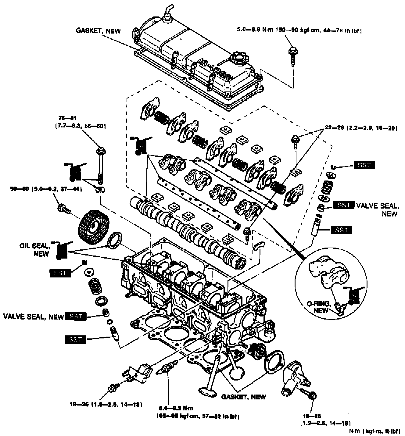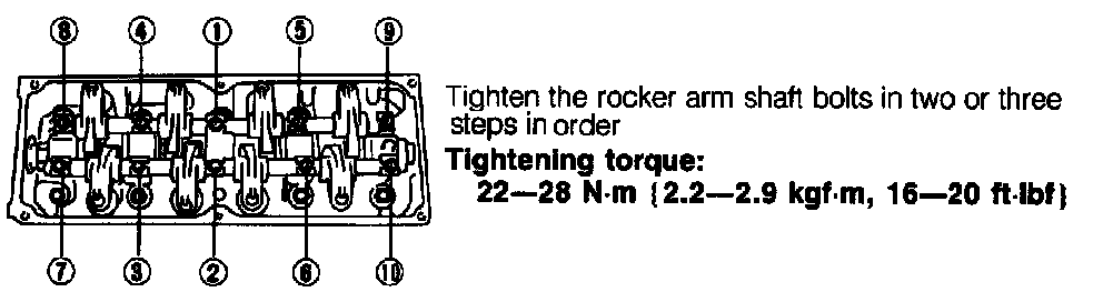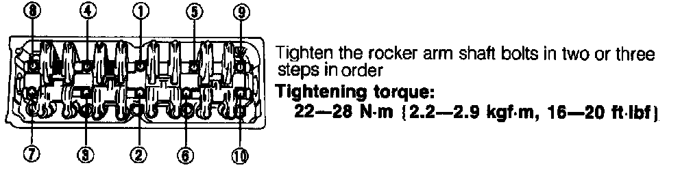 Tighten the cylinder head bolts in two or three steps in the order shown.