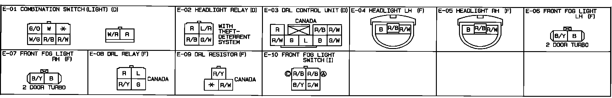 Headlights. Front Fog Lights (2 Door Turbo). Daytime Running Light. Control System (Canada). Connector Identification: